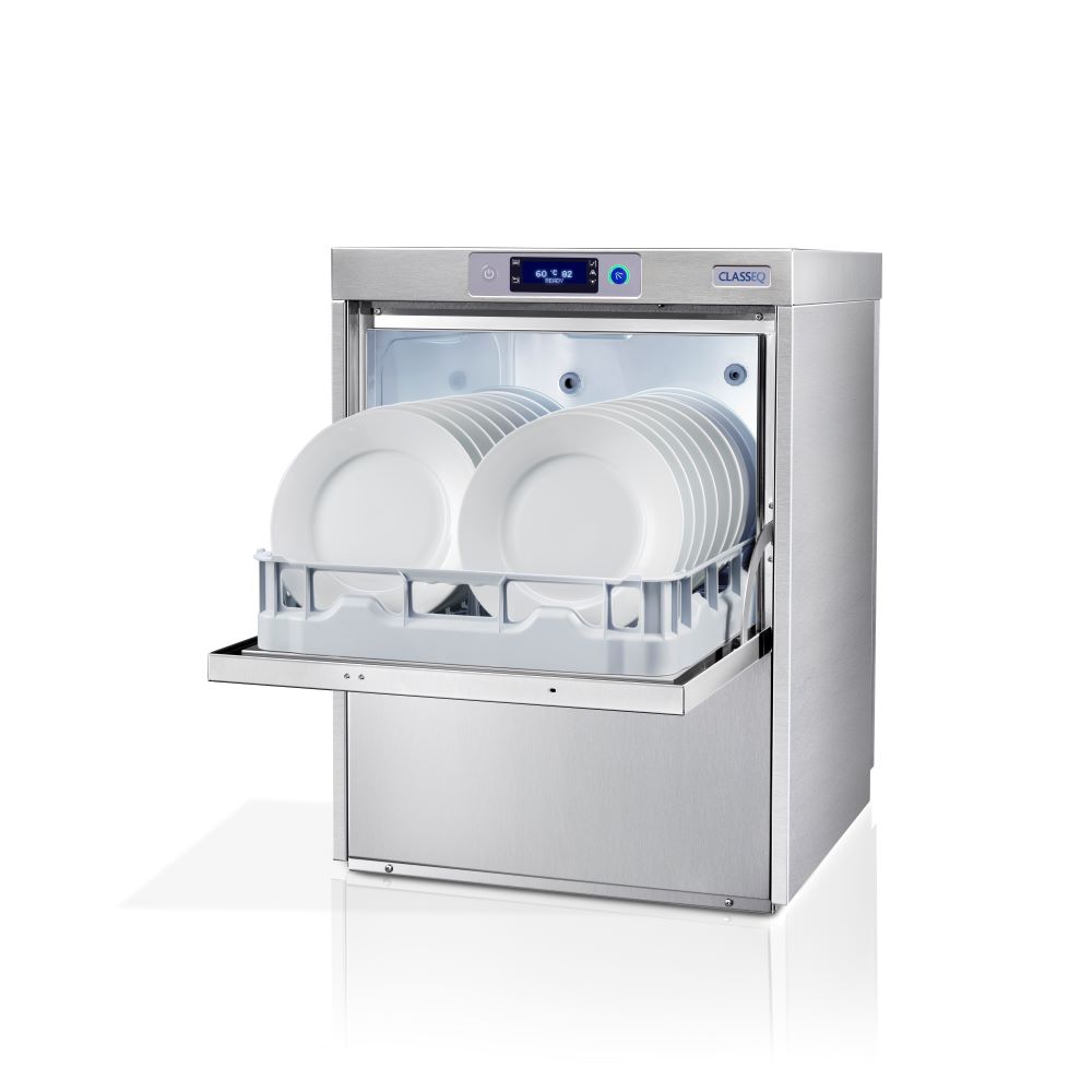 The Classeq C500 glass washer comes complete with a drain pump, a rinse booster pump and detergent and rinse aid pumps and features a double skinned door and cabinet to reduce heat loss and noise.